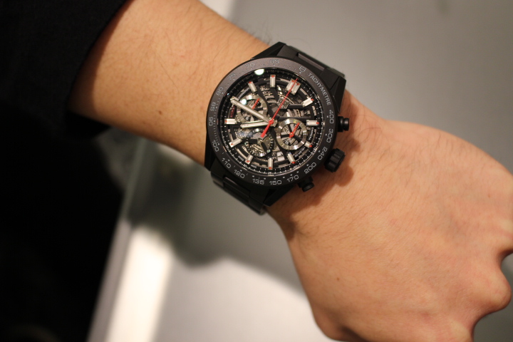 【T様×タグホイヤー カレラ ホイヤー02クロノグラフ セラミック】 当初、タグホイヤーの別モデルを検討されていたT様ですが、こちらのモデルをご覧になられて一目ぼれ!!寝ても覚めてもホイヤー02セラミックの事が頭から離れなかったそうです。そして、お忙しい中ここというお日にちをご指定頂き、満を持してお持ち帰り下さいました。つやの無いセラミックを全身にまとったオールブラックが精悍で男らしい印象を与えつつ、差し色の赤い針でスポーティな印象も加わった存在感ある1本です。一目ぼれして頂いたホイヤー02はT様の雰囲気にもぴったりと合う最高の1本でしたね!!是非、末永くご愛用下さい。ブレスのクリーニング等いつでも承りますのでお気軽にお持ちください!!T様、この度は誠にありがとうございました。今後ともどうぞよろしくお願い致します。