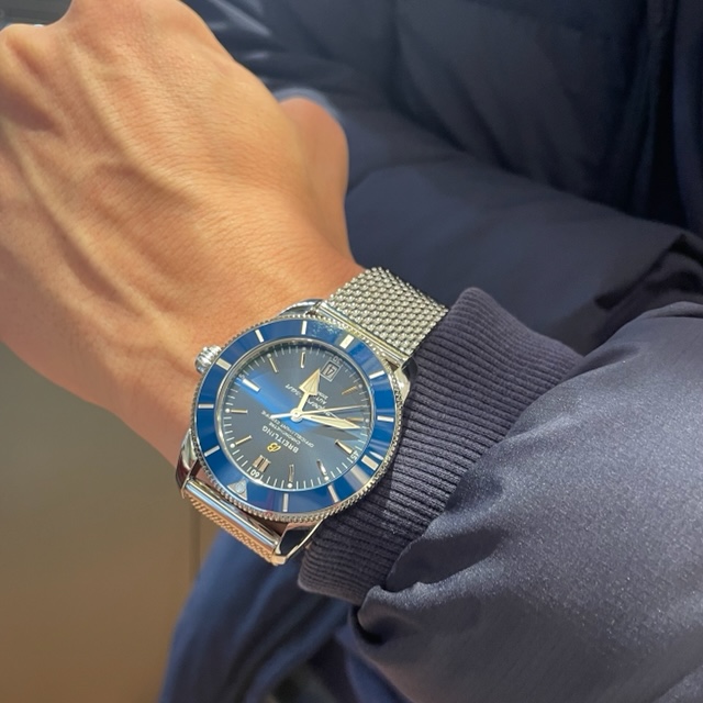 スーパーオーシャンヘリテージシリーズならではのメッシュ仕様のバンドは腕元を華やかに飾ってくれます。
