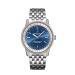 取扱店舗: 名古屋店・豊田店・西尾店・ネットブティック[ SPEC ]掲載されている商品はラインナップのご紹介となっております。カタログ番号 124843 サイズ 38mm 文字盤 ブルー 機能 3針 インデックス バー ケース素材 ステンレススチール ベルト ブレスレット ベゼル 回転計算尺ベゼル 日付 日付あり 防水性 30M 動力 自動巻き