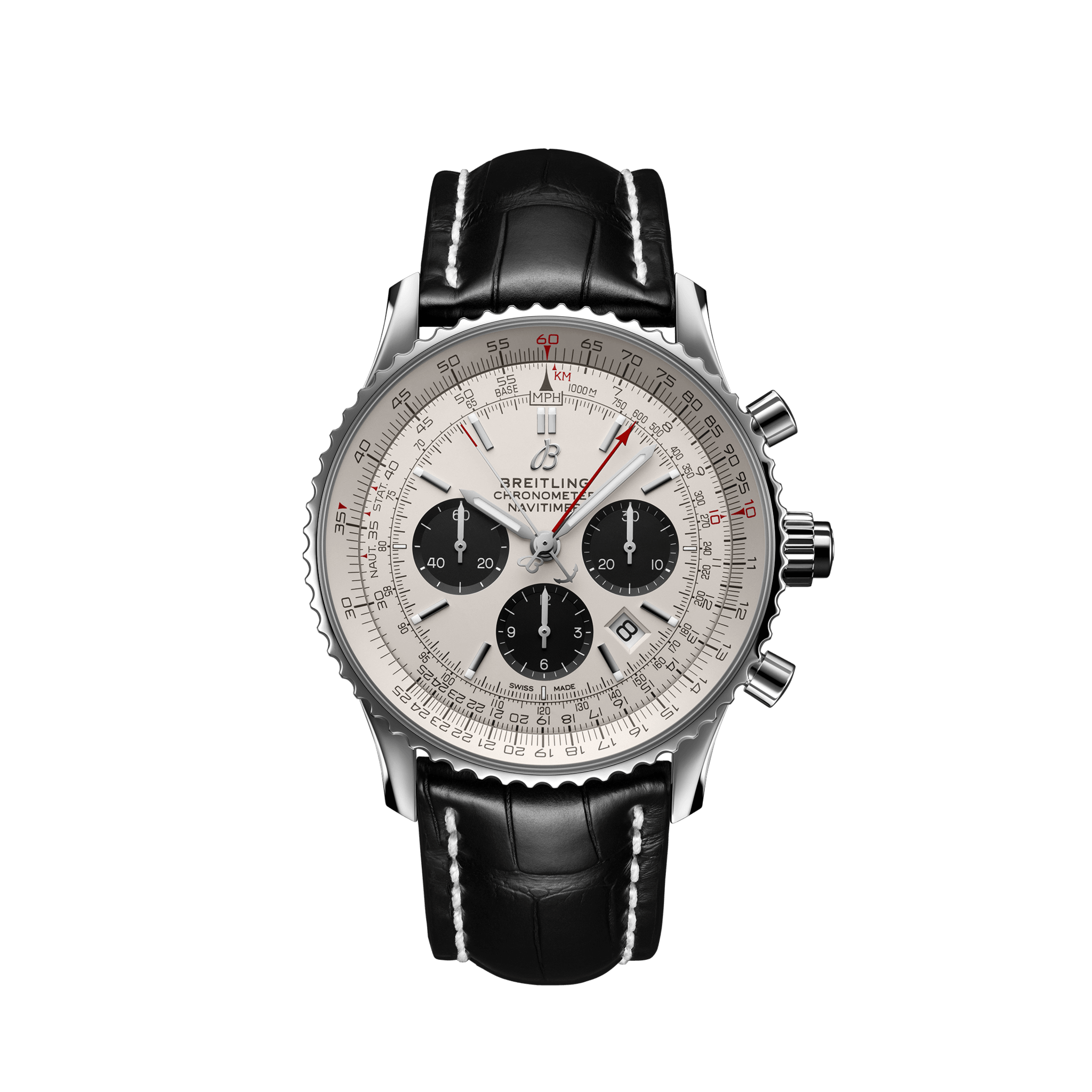 取扱店舗: 名古屋店・豊田店・西尾店・ネットブティック[ SPEC ]掲載されている商品はラインナップのご紹介となっております。カタログ番号 143389 サイズ 45mm 文字盤 シルバー 機能 ラトラパンテ(スプリットセコンド) インデックス バー ケース素材 ステンレススチール ベルト アリゲーターストラップ ベゼル 回転計算尺ベゼル 日付 日付あり 防水性 30M 動力 自動巻き