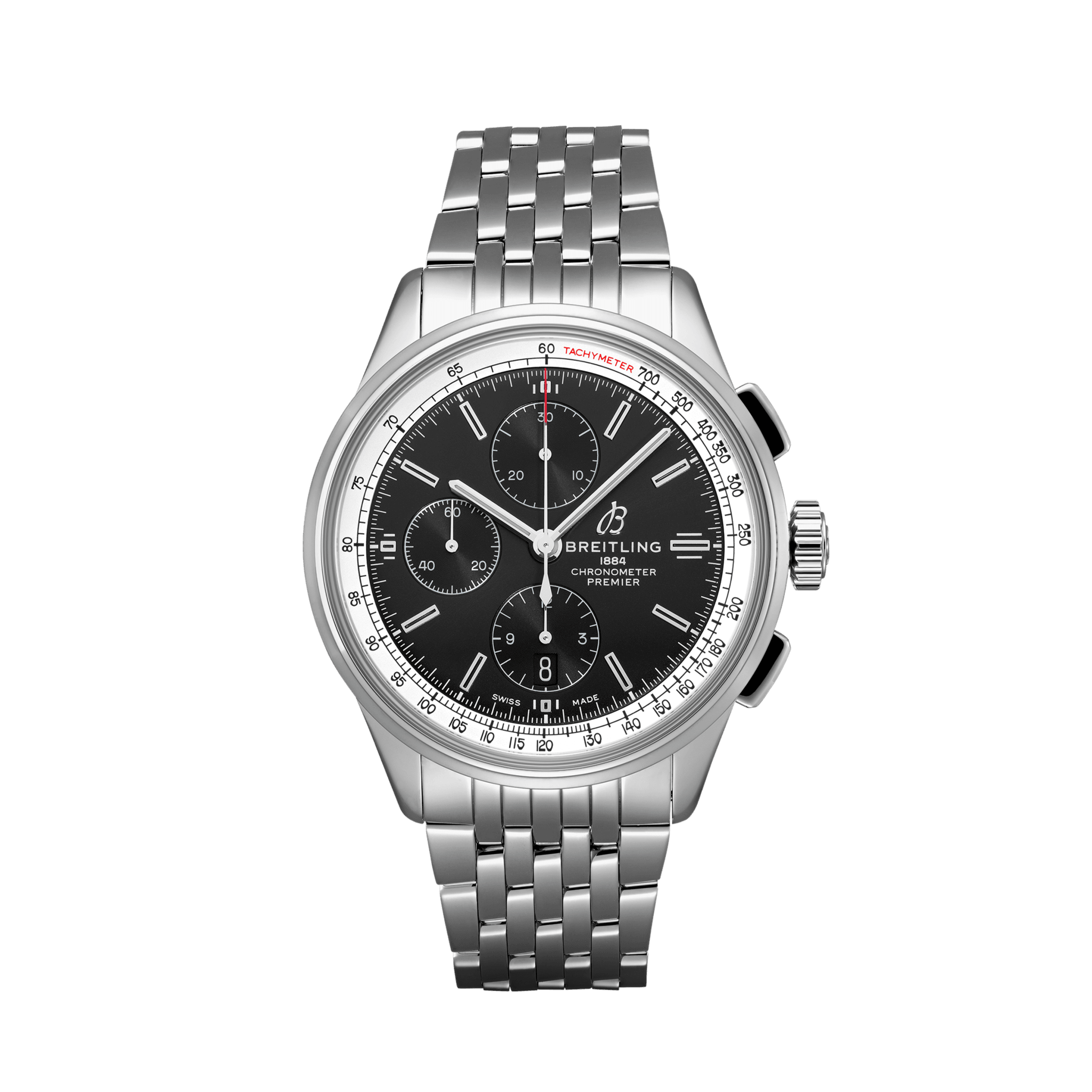 取扱店舗: 名古屋店・豊田店・西尾店・ネットブティック[ SPEC ]掲載されている商品はラインナップのご紹介となっております。カタログ番号 127934 サイズ 42mm 文字盤 ブラック 機能 クロノグラフ インデックス バー ケース素材 ステンレススチール ベルト ブレスレット ベゼル ノーマル 日付 日付あり 防水性 100M 動力 自動巻き