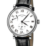 取扱店舗: 名古屋店・ネットブティック[ SPEC ]掲載されている商品はラインナップのご紹介となっております。カタログ番号 230007 サイズ 41.0mm 文字盤 ホワイト 機能 パワーリザーブ・バックスケルトン インデックス ローマン ケース素材 ステンレススチール ベルト クロコダイルストラップ ベゼル ノーマル 日付 日付なし 防水性 30M 動力 手巻き