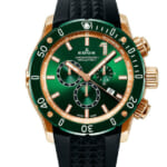取扱店舗: 名古屋店・豊田店・ネットブティック[ SPEC ]掲載されている商品はラインナップのご紹介となっております。カタログ番号 224834 サイズ 45mm 文字盤 グリーン 機能 クロノグラフ・ダイバー インデックス バー ケース素材 ローズゴールドPVD ベルト ラバーストラップ ベゼル 逆回転防止ベゼル 日付 日付あり 防水性 500M 動力 クォーツ