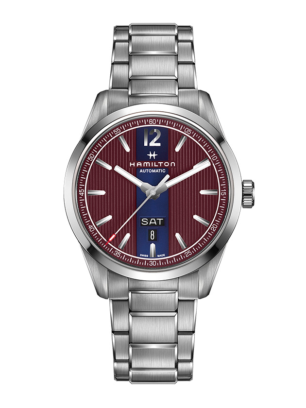 取扱店舗: 名古屋店・豊田店・ネットブティック[ SPEC ]掲載されている商品はラインナップのご紹介となっております。カタログ番号 119480 サイズ 42mm 文字盤 バーガンディ 機能 3針・バックスケルトン インデックス バー ケース素材 ステンレススチール ベルト ブレスレット ベゼル ノーマル 日付 デイデイト 防水性 50M 動力 自動巻き