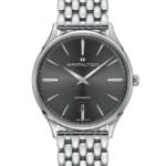 取扱店舗: 名古屋店・豊田店・ネットブティック[ SPEC ]掲載されている商品はラインナップのご紹介となっております。カタログ番号 130497 サイズ 40mm 文字盤 グレー 機能 2針・バックスケルトン インデックス バー ケース素材 ステンレススチール ベルト ブレスレット ベゼル ノーマル 日付 日付あり 防水性 50M 動力 自動巻き
