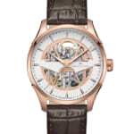 取扱店舗: 名古屋店・豊田店・ネットブティック[ SPEC ]掲載されている商品はラインナップのご紹介となっております。カタログ番号 184841 サイズ 40mm 文字盤 シルバー 機能 3針・バックスケルトン インデックス バー ケース素材 ローズゴールドPVD ベルト カーフストラップ ベゼル ノーマル 日付 日付なし 防水性 50M 動力 自動巻き