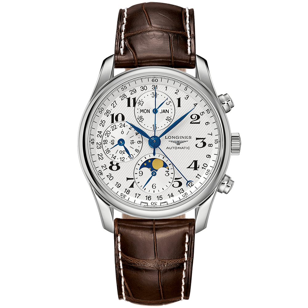 取扱店舗: 西尾店[ SPEC ]掲載されている商品はラインナップのご紹介となっております。カタログ番号 38279 サイズ 40.0mm 文字盤 シルバー 機能 クロノグラフ・ムーンフェイズ インデックス アラビア ケース素材 ステンレススチール ベルト アリゲーターストラップ 防水性 30M 動力 自動巻き