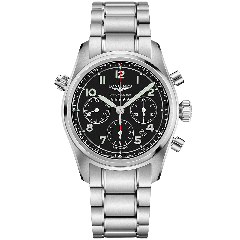 取扱店舗: 西尾店[ SPEC ]掲載されている商品はラインナップのご紹介となっております。カタログ番号 189446 サイズ 42.0mm 文字盤 ブラック 機能 クロノグラフ インデックス アラビア ケース素材 ステンレススチール ベルト ブレスレット 防水性 100M 動力 自動巻き