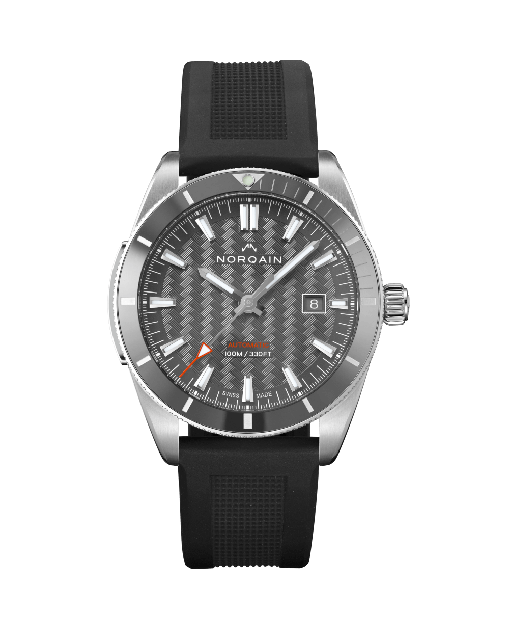 取扱店舗: 名古屋店・豊田店・西尾店[ SPEC ]掲載されている商品はラインナップのご紹介となっております。カタログ番号 144029 サイズ 42mm 文字盤 グレー 機能 3針・バックスケルトン インデックス バー ケース素材 ステンレススチール ベルト ラバーストラップ ベゼル 逆回転防止ベゼル 日付 日付あり 防水性 100M 動力 自動巻き