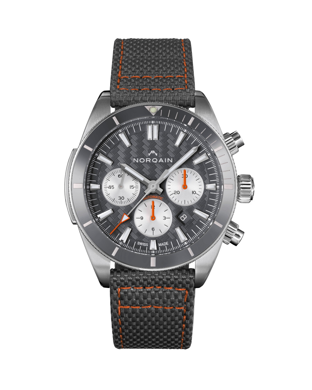 取扱店舗: 名古屋店・豊田店・西尾店[ SPEC ]掲載されている商品はラインナップのご紹介となっております。カタログ番号 143791 サイズ 44mm 文字盤 グレー 機能 クロノグラフ・バックスケルトン インデックス バー ケース素材 ステンレススチール ベルト ファブリック ベゼル 逆回転防止ベゼル 日付 日付あり 防水性 100M 動力 自動巻き