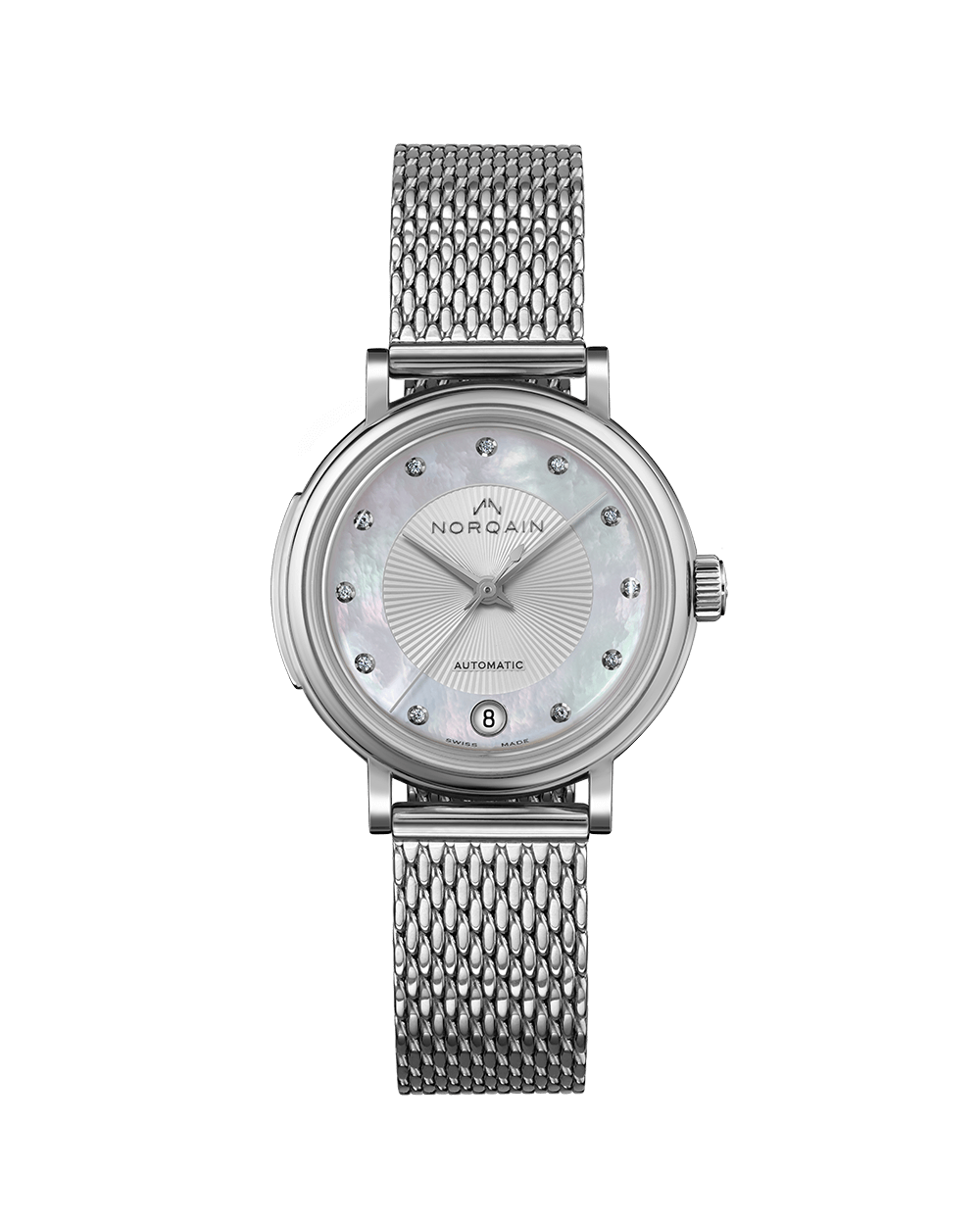取扱店舗: 名古屋店・豊田店・西尾店[ SPEC ]掲載されている商品はラインナップのご紹介となっております。カタログ番号 145196 サイズ 34mm 文字盤 MOP(マザーオブパール) 機能 3針・バックスケルトン インデックス ダイヤモンド ケース素材 ステンレススチール ベルト ブレスレット ベゼル ノーマル 日付 日付あり 防水性 100M 動力 自動巻き