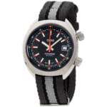 取扱店舗: 名古屋店・ネットブティック[ SPEC ]掲載されている商品はラインナップのご紹介となっております。カタログ番号 204950 サイズ 39.0mm 文字盤 ブラック 機能 3針 インデックス バー ケース素材 ステンレススチール ベルト NATOストラップ ベゼル ノーマル 日付 日付あり 防水性 100M 動力 自動巻き