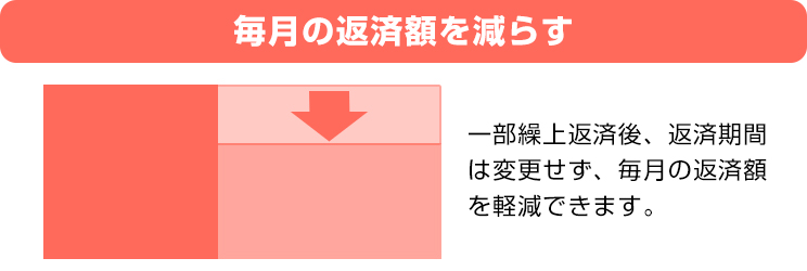 毎月のご返済とは別に、資金に余裕ができた際にお借入金額の一部を前倒して返済することにより、返済期間の短縮又は、毎月の返済額を減額することが可能です。